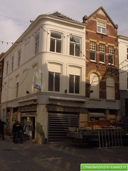Breda • Torenstraat 1 t/m 31 • In 1971 opent de Torenpassage, een winkelgallerij tussen de Lange Brugstraat Torenstraat en Havermarkt. Een kwarteeuw later is het project verlopen en verloedert de winkelpassage. Een nieuw initiatief eind jaren 90 leidt tot een nieuw winkelcentrum genaamd `Sas, genoemd naar de op deze plaats gevestigde broodbakkerij `t Sas (1913-1961). Het gedeelte vanaf de Lange Brugstraat opent in oktober 2003. Aan de zijde van de Torenstraat komt een exclusief 9 suites tellend hotel en een restaurant o.l.v. Mandy Vink en Joost van den Broek: het Bliss Hotel. Foto is gemaakt oktober 2001. (J. van Elewout) • Herfst 2001