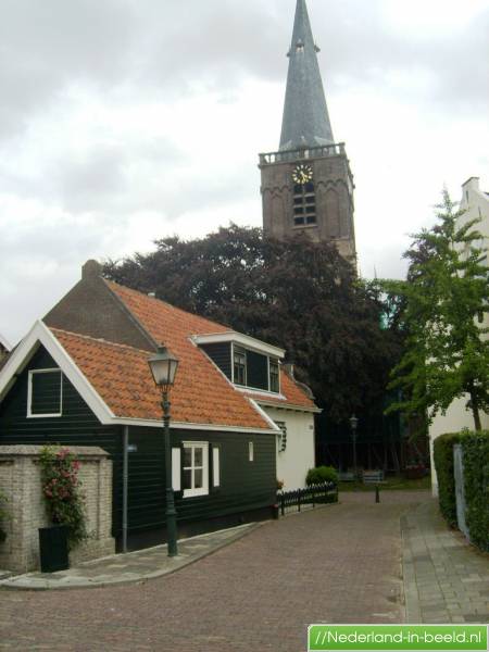 Ridderkerk - Kerkpad gezien vanaf de Schoutstraat met op de achtergrond de N.H.Joris-of Singelkerk.Foto genomen op 11-07-2009.